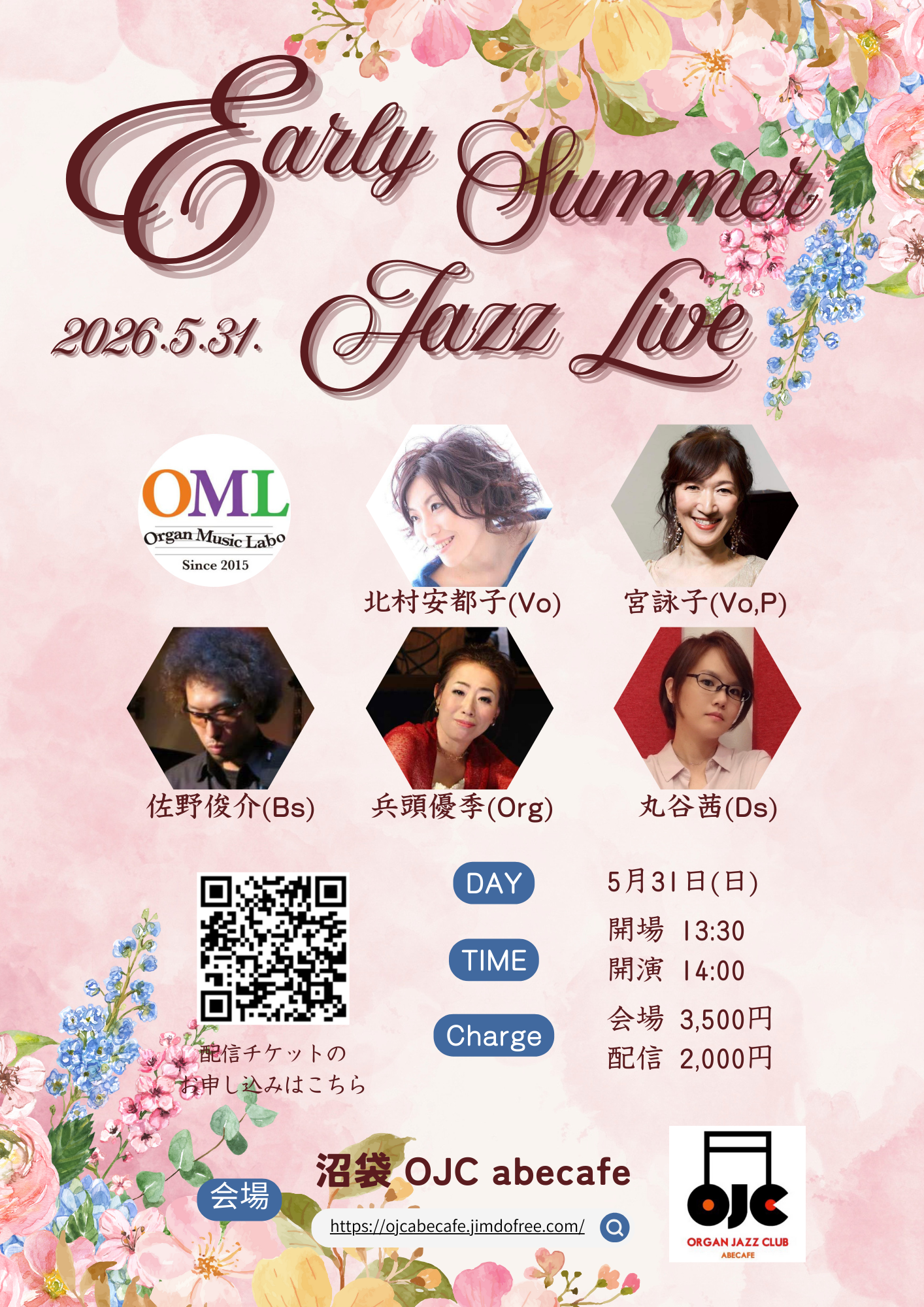 ■2026/5/31(日) OrganMusicLabo主催 Early Summer JAZZ LIVE@オルガンジャズクラブ OJC abecafe